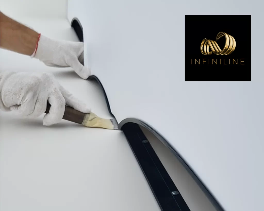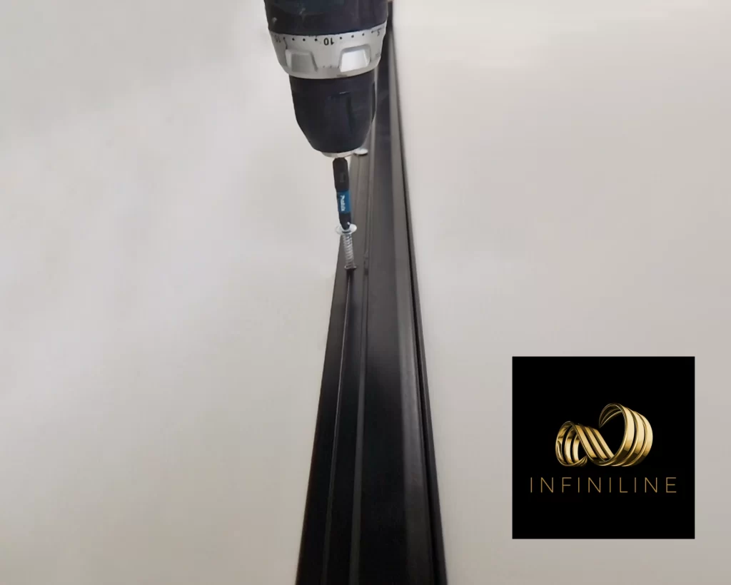 Na początku procesu montażu, specjaliści INFINILINE® przymocowują specjalny system profili do powierzchni ściany.